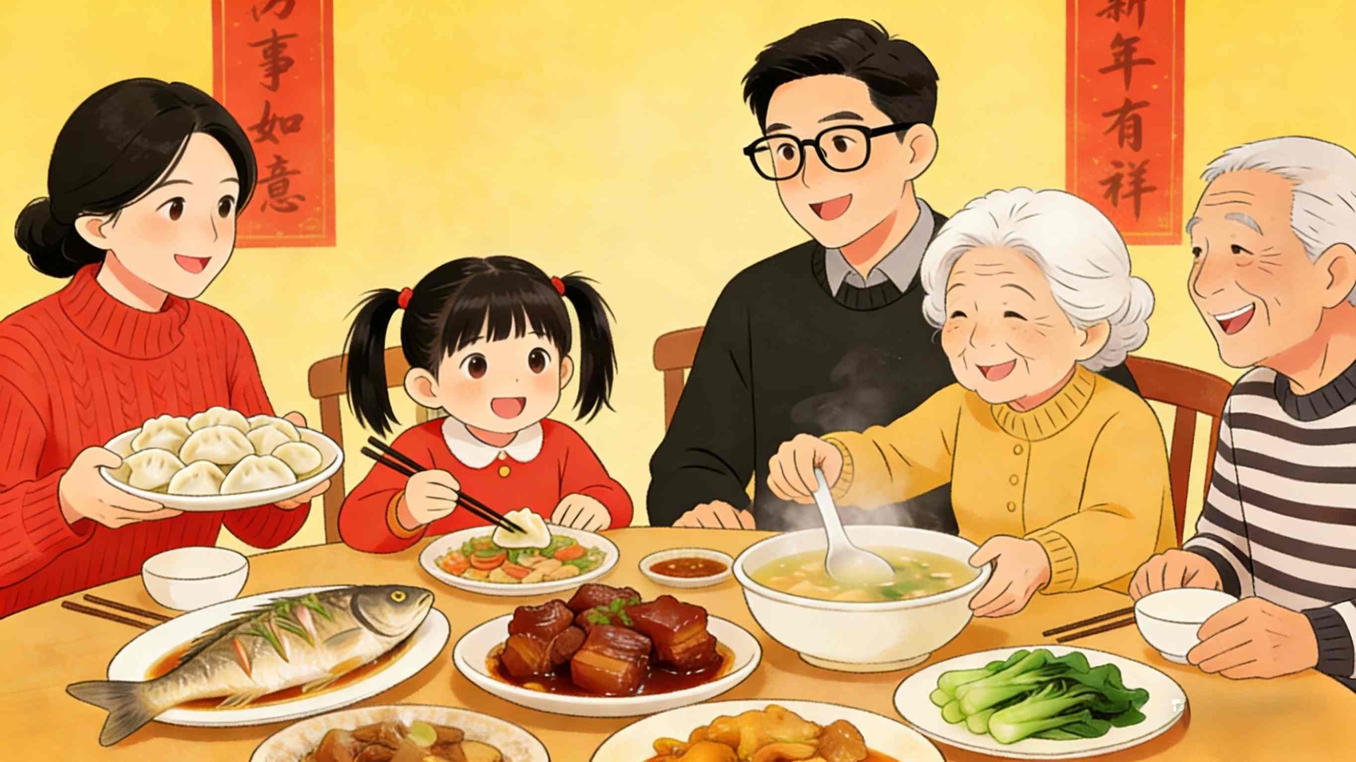 Vào tối ngày 30 tháng Giêng, ngày cuối cùng của năm theo lịch Trung Hoa, các gia đình quây quần ăn bữa tối đoàn tụ, chia sẻ sự ấm áp và niềm vui khi ở bên nhau.