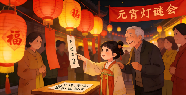 Trò chơi đoán đèn lồng bắt đầu từ thời nhà Tống và là một trong những hoạt động quan trọng và phổ biến nhất của Lễ hội đèn lồng. Những người chủ đèn lồng viết câu đố lên giấy ghi chú và dán lên những chiếc đèn lồng đầy màu sắc. Mọi người vây quanh để đoán câu đố.
